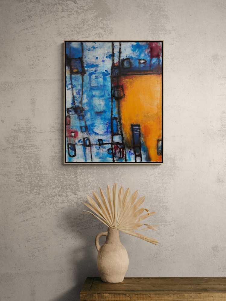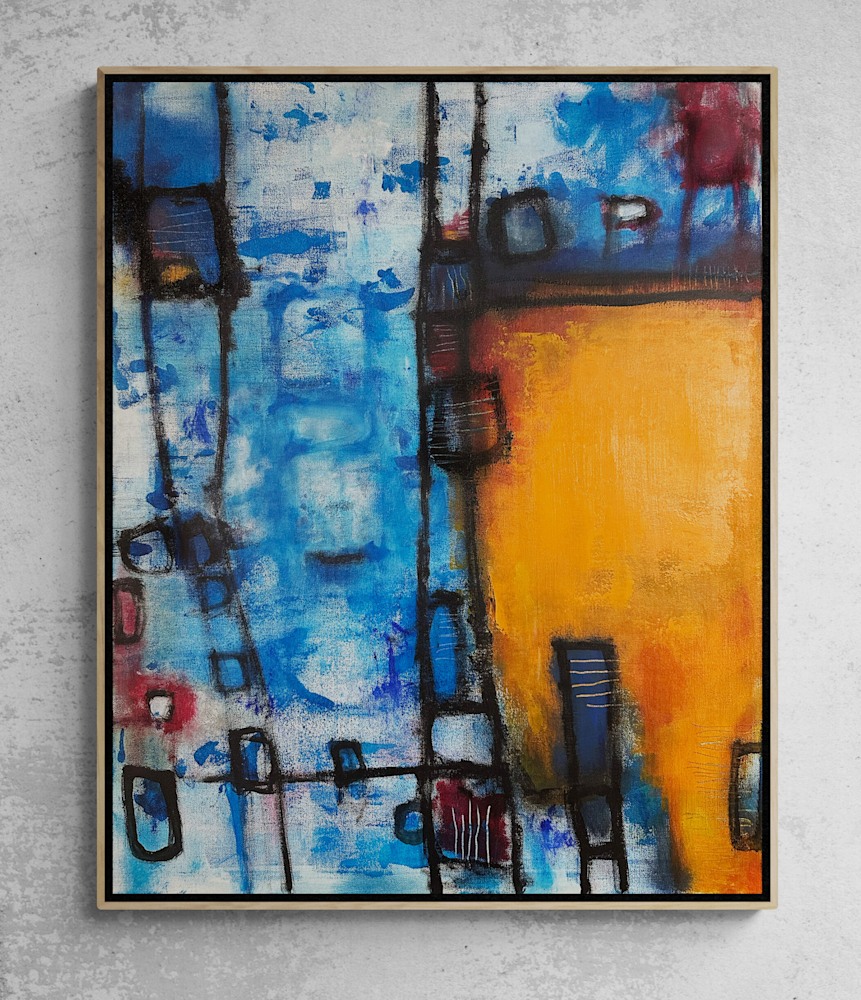 Acrylic on canvas, framed similar to what is shown in the images.  Ships free in the continental US.